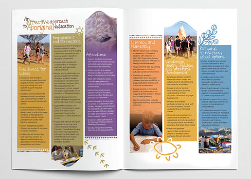 Aboriginal education campaign using indigenous icons and drawing. These were studied to understand their meaning and thereafter illustrated and digitised to use in the design.