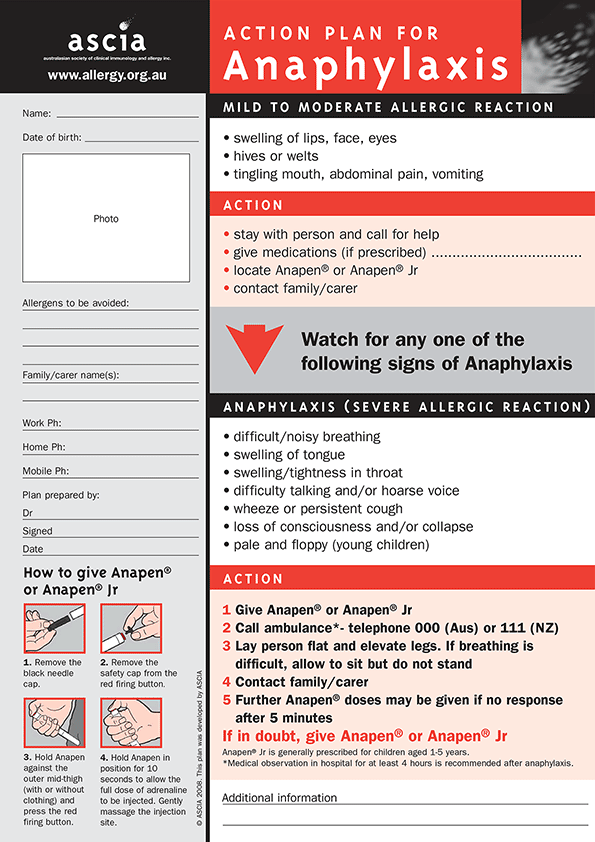 Design and Illustrations for a range of allergy action plans
