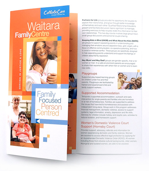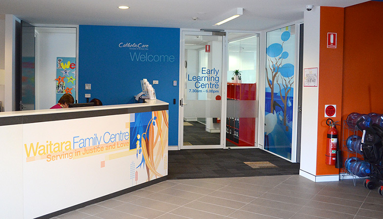 The Waitara Family Centre was given a make-over for its relaunch in May 2013. A contemporary look was developed to unify the centre under the company’s corporate image. Illustrations were especially created to fit the environment, their services and to cater to the specific target audience of this centre.